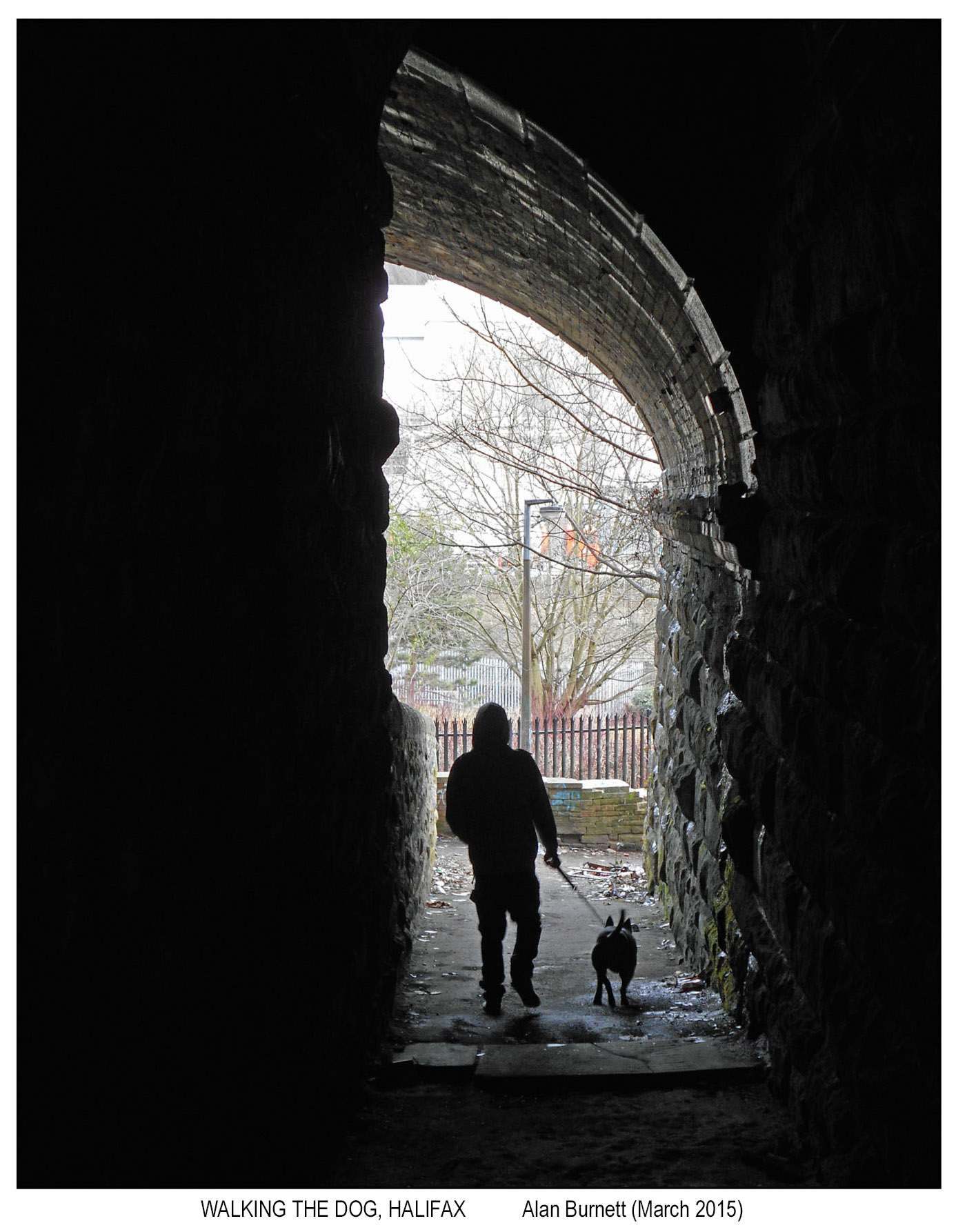 I had a bit of a bad feeling about this one. As I entered the very long, very dark and very deserted old walkway under the railway line there was a young bloke in a hoody walking a very cross looking dog approaching behind me. The shot looking out of the old stone viaduct was a good one but I knew if I waited a little and repressed my desire to run away, it would be even better. The young chap was charming. He wished me good morning and the dog wagged its tail. And then he walked on. And I took the picture. And I had a bit of a good feeling about this one.