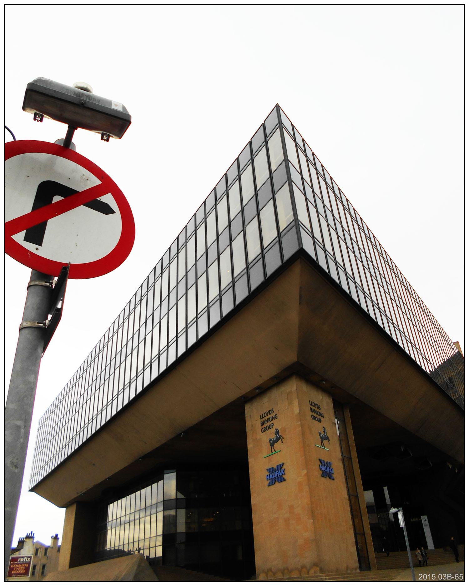 It’s all angular; you could cut yourself quite badly on that leading edge. It sprouts from a patch near the centre of Halifax that used to be the home of a brewery: all odds and ends, curves and pipes; as blunt as a barrel. It fits its environment like a lump of breeze block in the wall of the Taj Mahal.