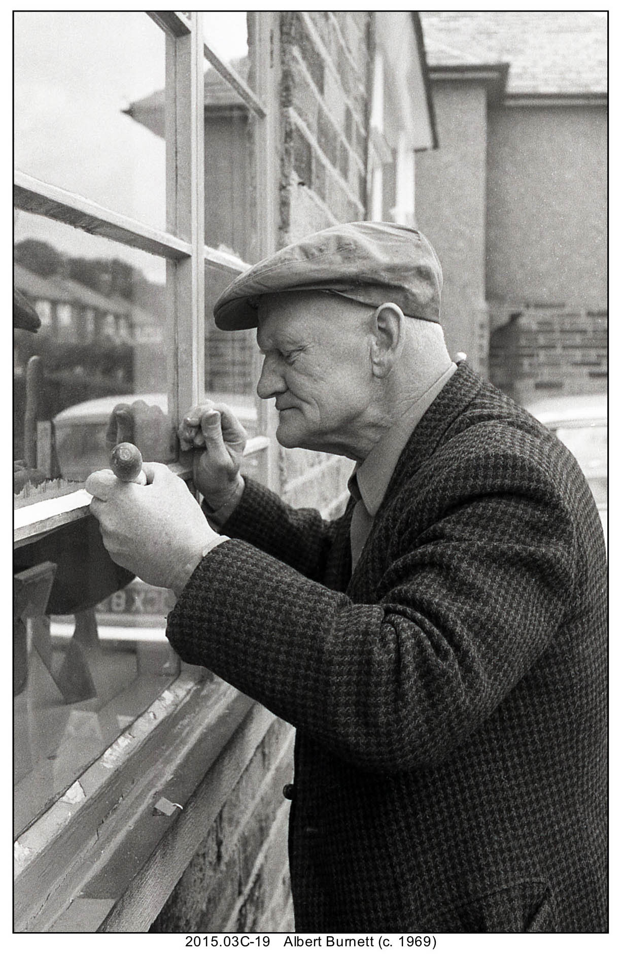The same strip of film and therefore the same approximate date – maybe 1971 or 1972. This is my father, Albert, replacing the putty in the front windows at our house in Oaklands Avenue, Northowram. He will have been about sixty at the time and therefore he still had another five years left to work.