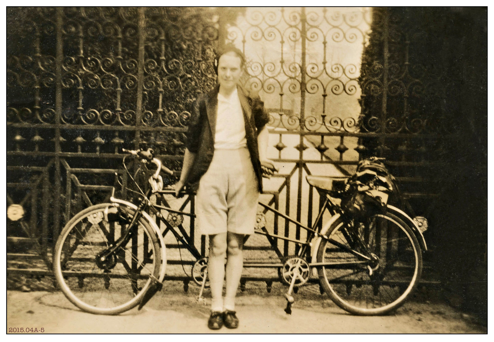 The photograph features my mother, Gladys Burnett, and must have been taken in the early to mid 1930s. At the time my father and mother had a tandem and their holidays would involve tours around Britain. Later my father graduated to a motorbike and sidecar, a graduation my mother welcomed because – given that the predominant climatic conditions were wet and the predominant topography was hilly – she was happier under the protection of a canvas awning and the motive power of an internal combustion engine.