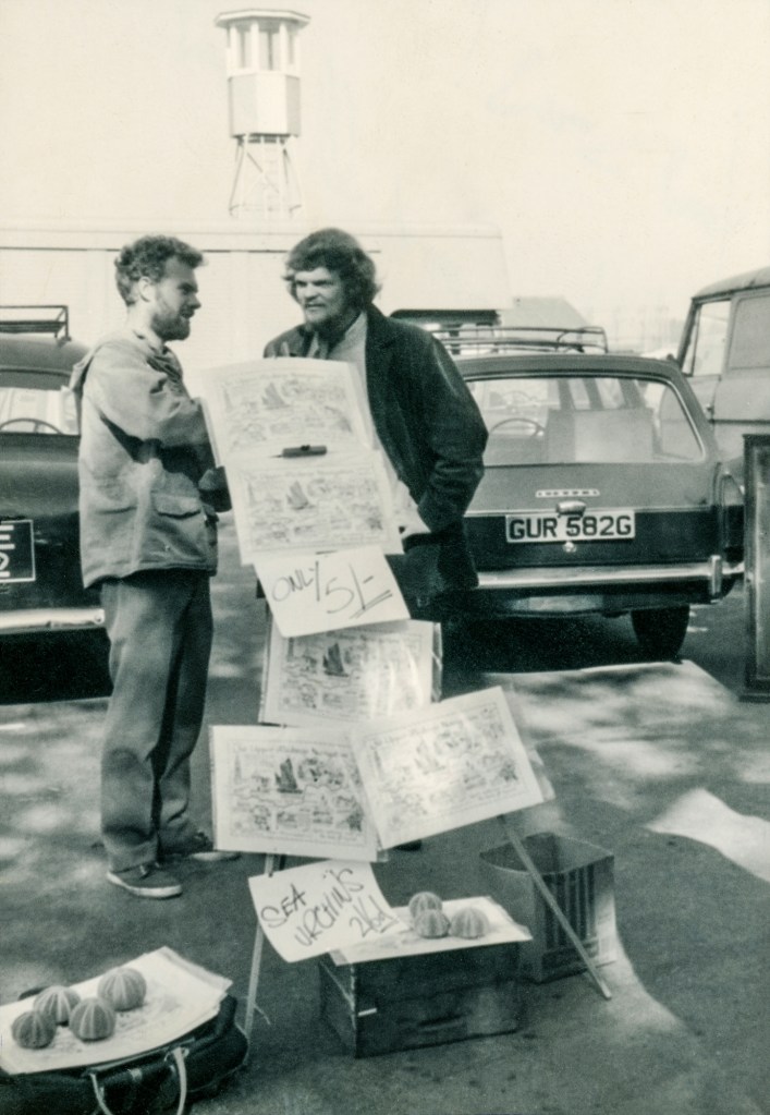 This picture of my brother, Roger, and myself was taken in Maidstone Market in September 1969. I was about to go off to university and my brother was about to go off sailing around the canals of Europe. He funded his excursion by selling his drawings and paintings – he also had a side-line in sea urchin shells. I funded mine with a student grant! Those, indeed, were the days.