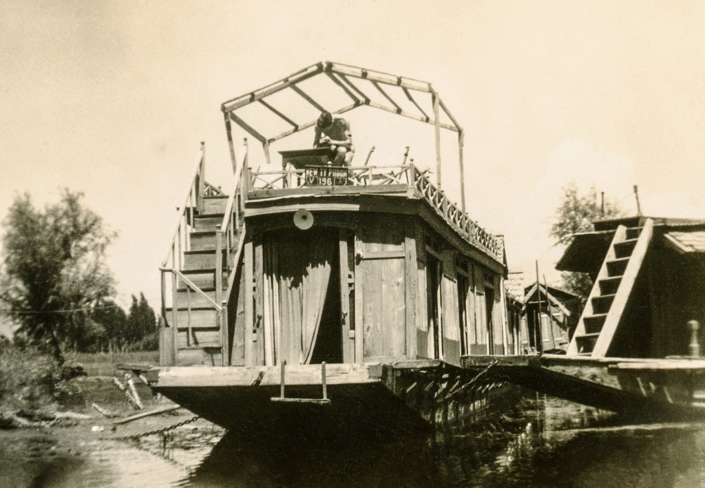 On the back of this print is written “Our Houseboat, August 1946“. There is also a location which looks like “Kashirit“. The boat is called the “New Ty Phoon” – the location is probably the Indian sub-continent shortly before independence and partition.