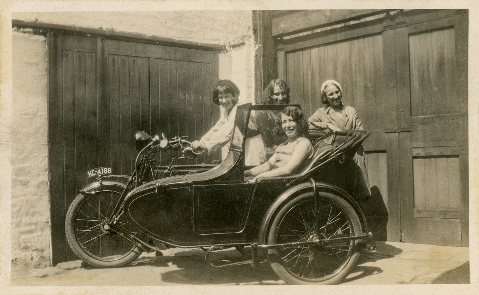 This is a wonderful old photograph, which, like so many wonderful old photographs, is of unknown people, in unknown places, at an unknown time. There is no need to have the genealogical satisfaction of knowing that Auntie Winnie is the one on the left, or Mabel Cuddlington is the one on the right: the image can be appreciated in its own right and as a slice of history. And what a slice it is: doorstep-thick and dripping with best butter. Were these four ladies just passing and keen to avail themselves of a photo opportunity, or was it their bike? We will never know.