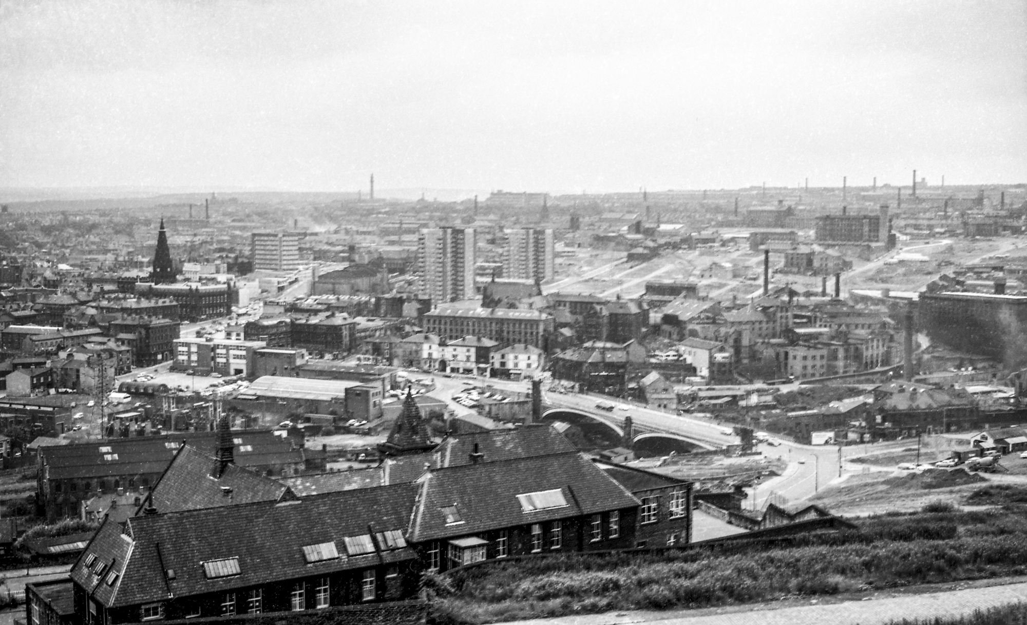 You could base a whole town planning conference around this photograph, or keep a classroom of kids occupied for a month. What colour is the Town Hall? How many mill chimneys are there? Why the large-scale demolitions? I must have taken the photograph in about 1970, just as work on Burdock Way was being started. When I enlarge the photograph and look at the individual streets – many of which are now long gone – it is like a trip down some winding memory lane. We used to queue up to get our Co-op Divvy up that street, and I used to walk down that street to meet my father at the factory gate. There is the story of the first part of my life in this photograph.