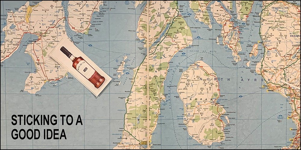 We decided that our interest in creatures of the deep (the subject of Phoebe’s book) was limited to the question of how many of them we could eat with chips, so a different subject matter came to mind. And that is how the concept of the Scottish Malt Whisky Sticker Book came about. A series of maps of the Highlands and Islands along with page after page of small stickers illustrated with a whisky bottle. The stickers are, of course, of the “scratch ‘n sniff” variety, so connoisseurs can firstly identify, then locate, then stick each of the glorious stickers.