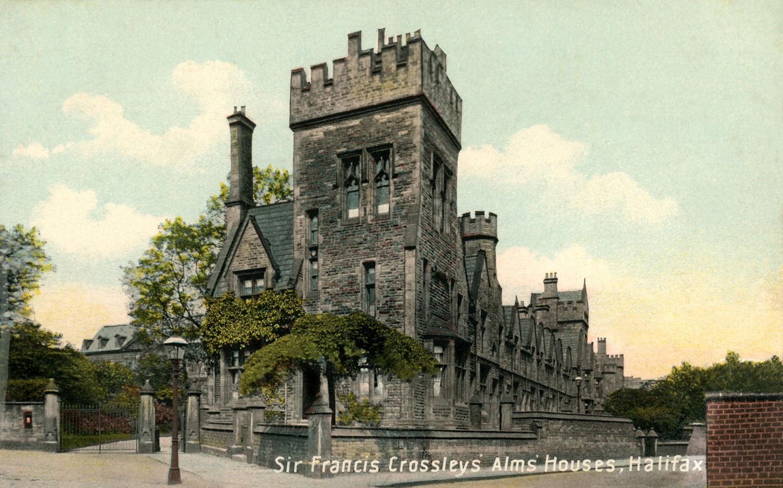 Those familiar with Halifax will know that there are two sets of Crossley Almshouses in the town, on opposite sides of People’s Park. They were built by the two brothers, Frank and Joseph Crossley, and both still exist today. The Francis Crossley Almshouses, pictured above, predate those built by his brother Joseph on Arden Road, but there is a similar architectural style displayed in both buildings. Whilst the Frank Crossley Almshouses were designed for the poor and elderly of the district, the Joseph Crossley Almshouses were originally intended for the retired workers from Crossley’s carpet mills.