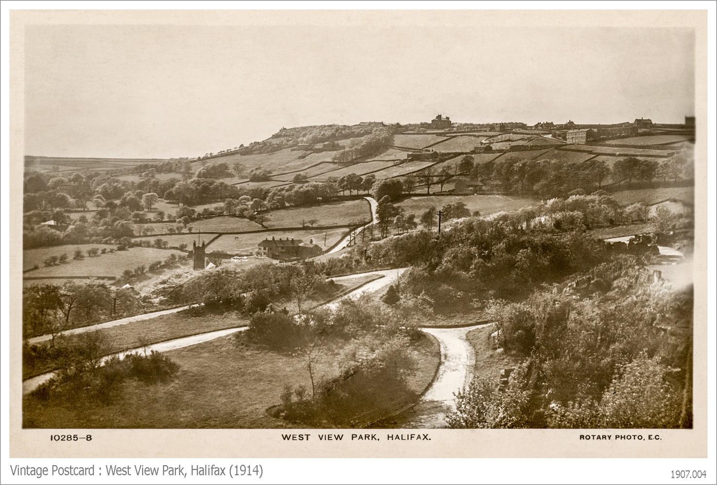 I must confess I was only vaguely aware of the existence of West View Park before I came across this vintage postcard. I have a cousin who used to walk his dog there, and I suspect that I have passed the entrance when going somewhere else. Now I want to visit the park, I want to walk the paths, look down the valley, see how it has changed over 100 years.