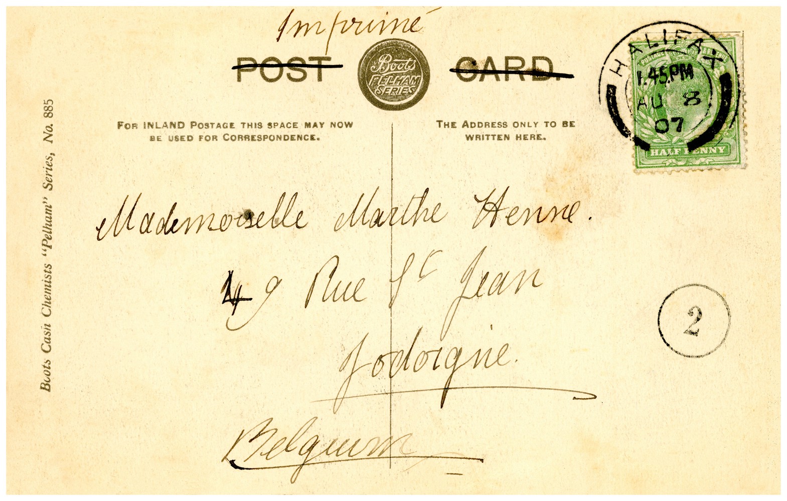 So if you were writing to a Belgium beauty from Edwardian Halifax, what better image to send her than one of the finely proportioned Bankfield Museum. The subtext doesn’t seem to say, “look at the fine homes the rich and famous can live in“, but, “look at what we can create together when we are proud of our collective history“.