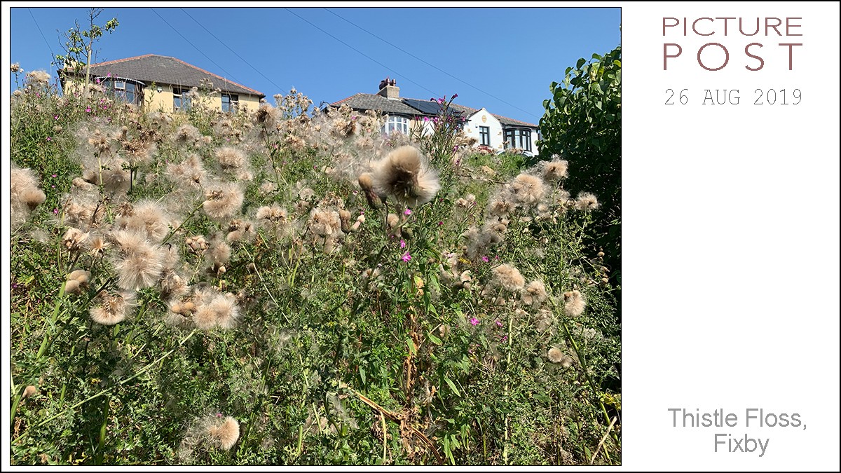 Thistle Floss, Bradley Road. Just waiting for the slightest of breezes to send it on its way.