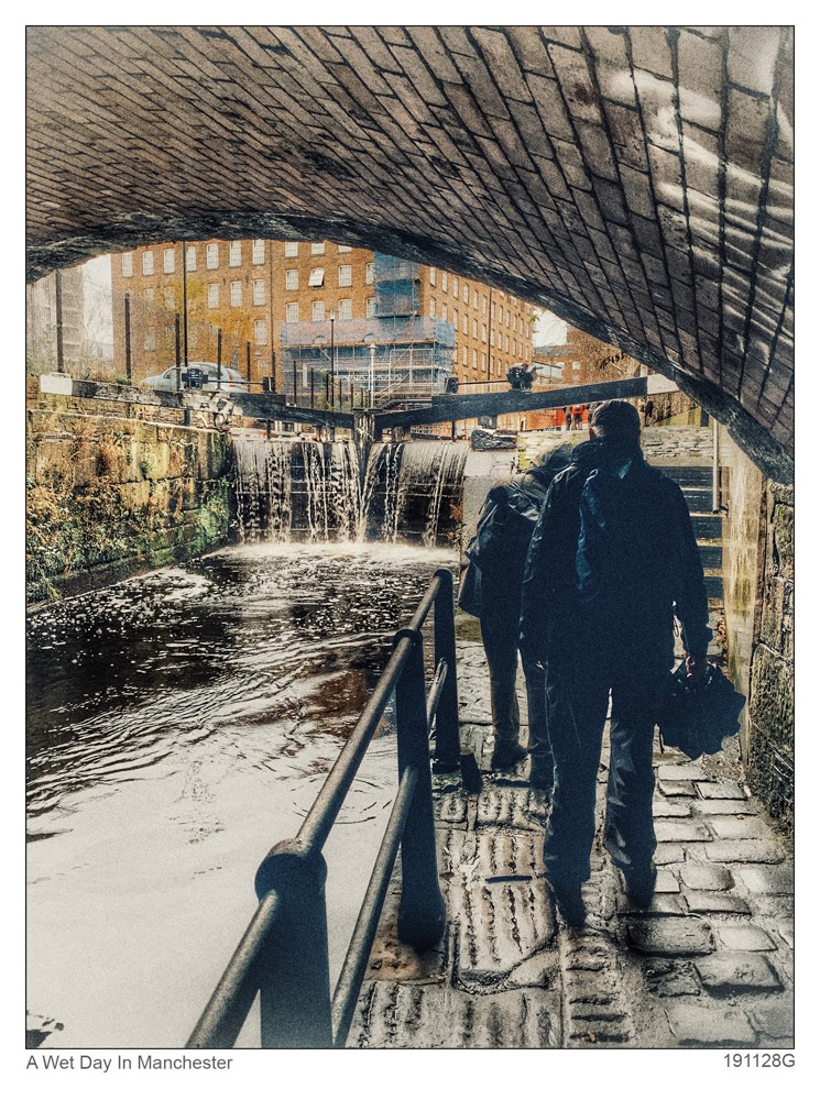 We went to Manchester and walked along the Rochdale Canal. The water seeping up through the stone sets mingled with the water streaming down from the sallow sky.