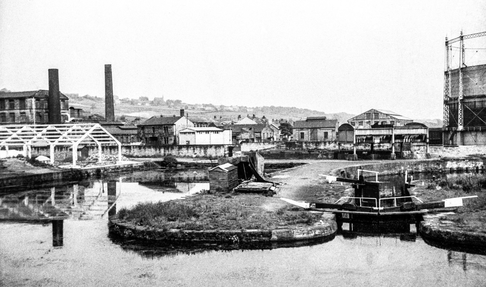 Whilst walking around the moorings I was reminded of an incident that occurred there some 55 years ago. My brother had a canal barge that was moored in the canal basin, and my father and I were visiting him one evening. His was the only boat in the basin – the scene was just as bleak and empty as in that old negative of mine. All of a sudden we heard an almighty splash, and as we emerged from his boat we saw a car slowly sinking below the dark waters of the canal. Assuming there must have been a driver in the car, my brother was on the point of diving into the water to see if he could rescue anyone, when my father – a Yorkshireman of the old school – warned him that by doing so he would ruin a perfectly good pair of trousers! Our debate was curtailed by the sight of the driver emerging from below the surface of the water, and we managed to drag him out of the canal from the comparative safety of the towpath, without risking our health and our trousers.