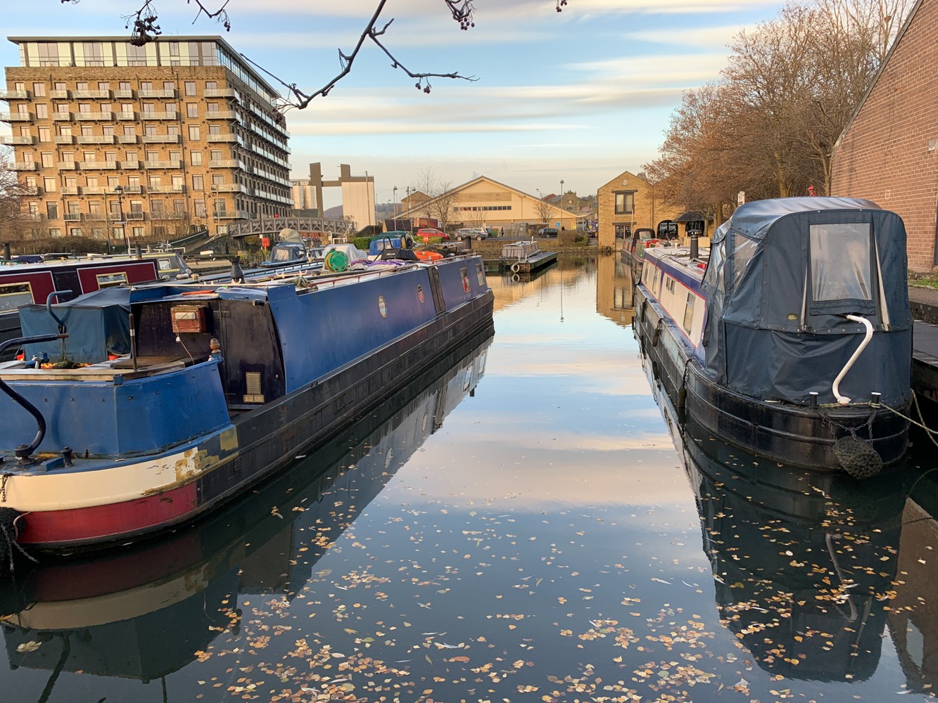 During a regular scanning session of my old negatives, I came across this 35mm negative from the late 1960s – and I suspected that it had been taken in Brighouse Canal Basin. In order to confirm my suspicions, I took a walk there this morning and took a series of shots of the canal basin fifty years on. Everything has changed but the basic shape and structure of the canal and locks. So much of what has happened over the last fifty years can be seen in the changes between these two photographs: the gas works and mill chimneys are gone, the pleasure craft moorings and waterside bar restaurants have arrived.