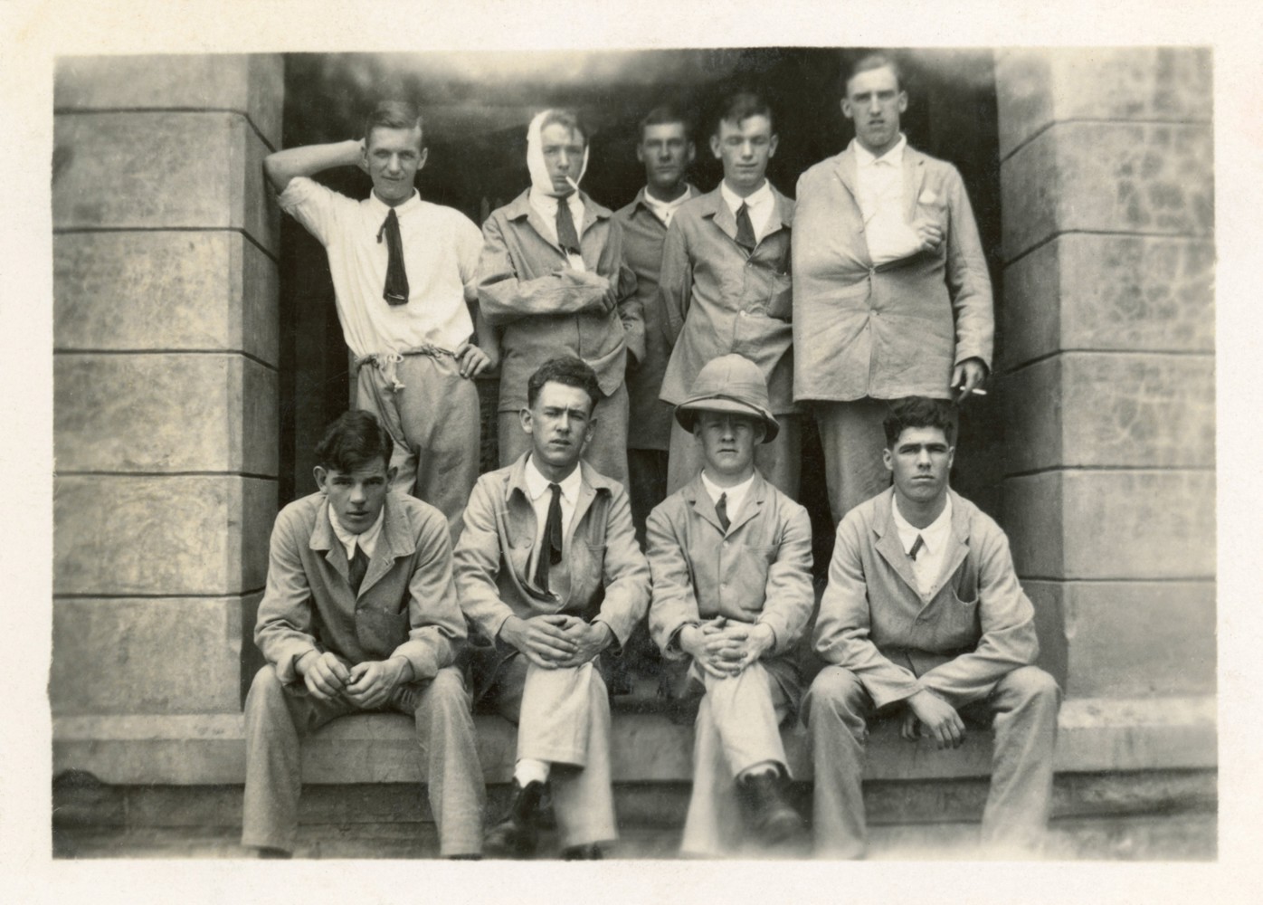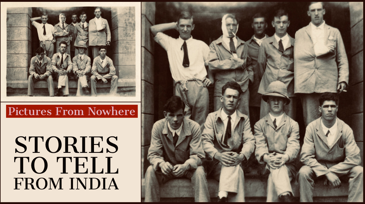 This old picture is not exactly from nowhere, but from an album of photographs taken in India in the 1930s. What stories could be told by these nine men?