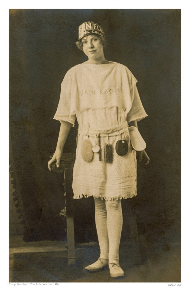 Not many people have a picture of their mother dressed as a bathroom! All I know about this delightful photograph is that it was taken in 1928 when my mother, Gladys, was just seventeen years old. I recall her telling me that the occasion was a fancy dress competition and the design of this rather unique costume was all her own idea. Whether she won the competition or not, I have no idea: it doesn’t matter. The photograph is a prize in itself.