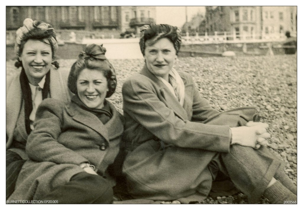 There is something particularly engaging about this photograph of three women on a beach, which must date from the 1940s or early 1950s. The beach may be stoney rather than sandy, but the three women are wonderful pictures of their time. Their hairstyles could have been created by the make-up department of some twenty-first century period social drama; their smiles are absolutely genuine.