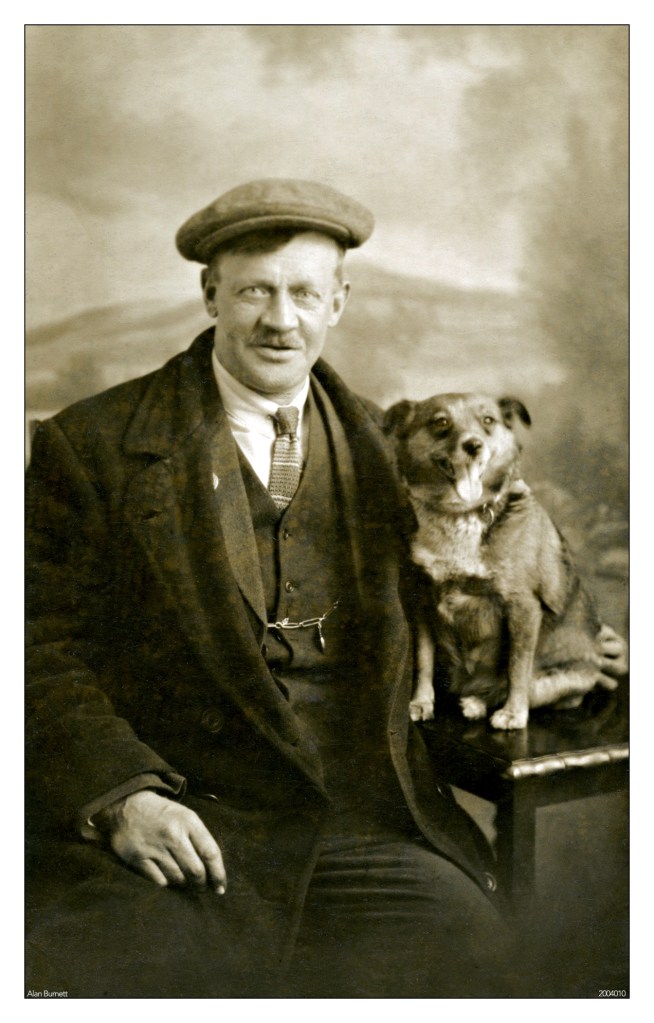 ENOCH BURNETT AND BETTY : Enoch Burnett pictured with his dog, Betty. The picture shows Enoch aged around 30, which would mean it was taken in 1908 or there about. By then, he had been married for three years and already had three children: John Arthur (b.1899); Miriam (b.1901); and Annie Elizabeth (b.1903).