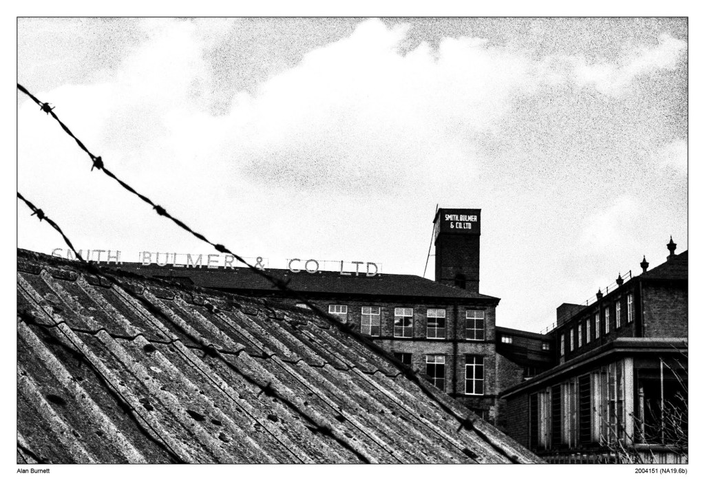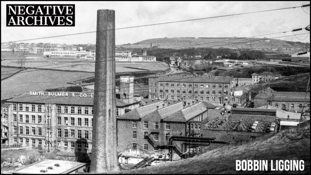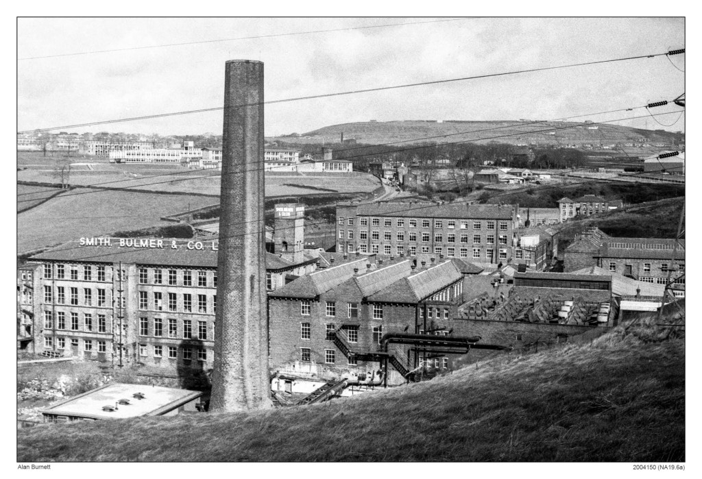 Smith Bulmer’s Mill in Holmfield, Halifax, pictured in the late 1960s or early 1970s. I had a holiday job there once, as – what used to be known as – a “bobbin ligger”: sorting out a mountain of old bobbins into pointless piles.