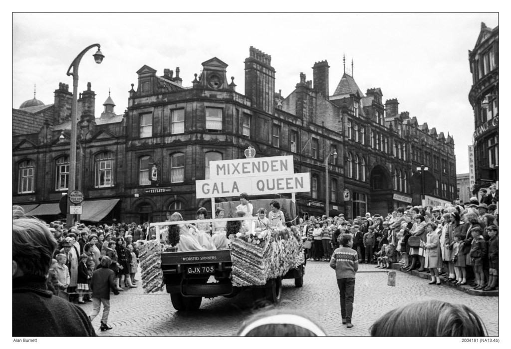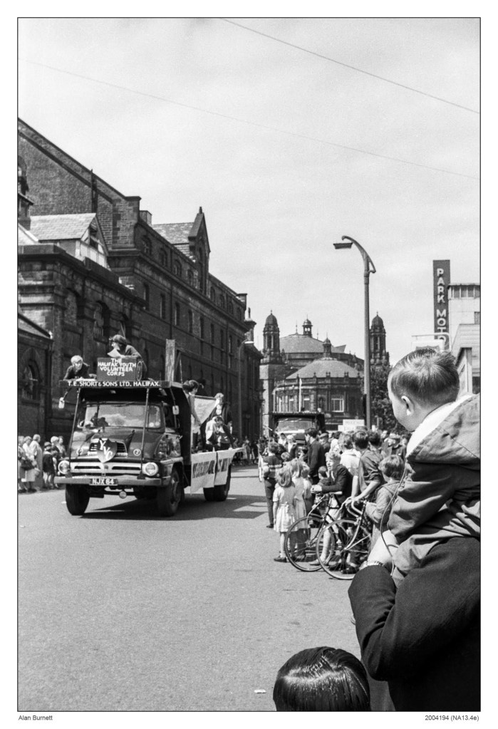 SADDLE SORE : The parade moves on to the top of Woolshops, and if you can divert your eyes for a moment from the Mixenden Gala Queen, you will see the splendid Saddle Hotel at the corner of Russel Street and Market Street in the background. The demolition of this fine building and its replacement with the concrete monstrosity that is there today must be one of the greatest architectural crimes ever committed in Halifax.