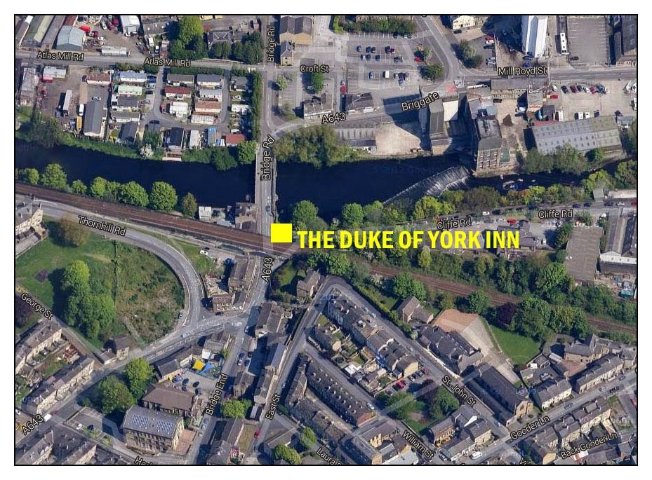 For those who don’t know the area, you can think of Brighouse and Rastrick as the Budapest of the Calder Valley. To the north of the River Calder stands the town of Brighouse; busy, somewhat full of itself with its municipal buildings and self-righteous chapels. To the south of the river stands the older parish of Rastrick, an elderly uncle fallen on harder times. As with all river-side communities, the crossing point become the focal point of settlement, and ever since the thirteenth century, the crossing point has been at Rastrick Bridge. A succession of wooden bridges were followed by a succession of stone bridges and until the new bridge was built for the Huddersfield to Bradford Turnpike Road in the early nineteenth century, Rastrick Bridge was the only crossing point in these parts. It was a house near this old bridge that gave Brighouse (bridge house) its’ name. These days the old bridge looks a little tired, surrounded by boarded-up buildings and empty plots of land. On one of these plots, at the southern end of the bridge, once stood the Duke of York Inn.