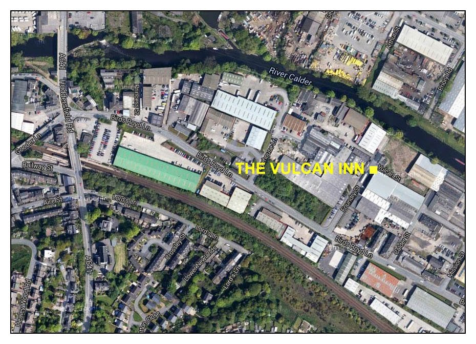 Few people wander around the Birds Royd Lane area of Brighouse these days unless they work in one of the industrial units or unless they took a wrong turning whilst searching for somewhere better. There are a few houses left, but not many. One or two old stone-built mills and warehouses appear to have been forgotten in the push towards sterile modern industrial units with over-sized car parks and under-sized architectural ambitions. But just one or two. The rest is corrugated steel and breezeblock. It is easy to forget that this part of Brighouse was once a place where factories, mills, foundries, dye-works and breweries fought for space with row upon row of smoke-encrusted back-to-back houses. And where there were houses and work and life, there were, of course, pubs. In the last quarter of the nineteenth century you could have called for a pint in the Dyers’ Arms, or the Sportsman, or the Woodman, or the Railway Hotel, …..or the Vulcan Inn.