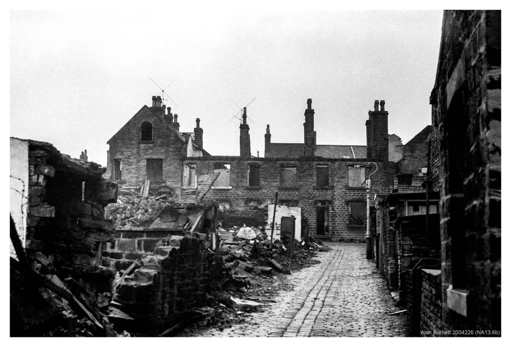 It is a sight you don’t see much any more – demolition on a large scale. These days it’s more discreet: hidden behind scaffolding and plastic sheets. This was Elland back in the early 1970s, when the demolition teams left open wounds: cobbled streets without a purpose; bare chimneys pointing the where heaven used to be.