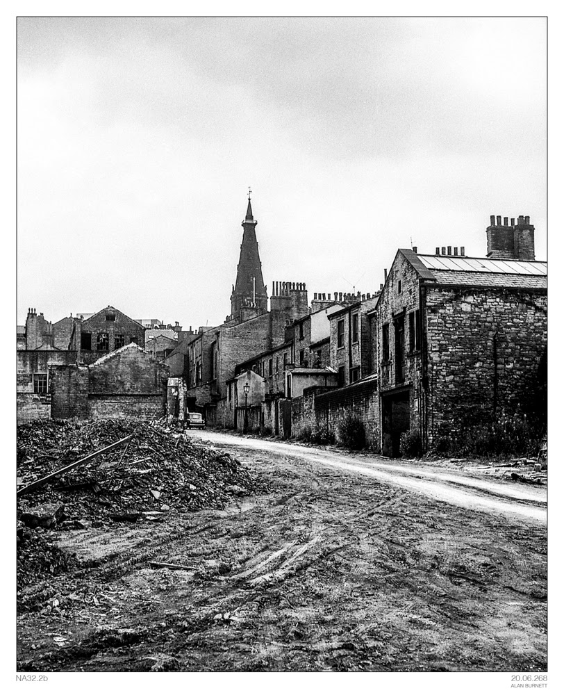 At some stage in the late 1960s, large sections of the bottom end of Halifax were demolished. These were the streets that ran from Market Street, down to the appropriately named Winding Road. They are etched into my youthful memory – longer, grander, greater than they undoubtedly were – but their names are largely lost to me. This is one such street. That is Halifax Town Hall in the background, and I have a feeling that it might by Gaol Lane, but I turn to my fellow Haligonians of a certain age for either confirmation or correction.