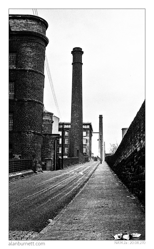 This is a photograph of Old Lane in Halifax I took almost fifty years ago. I was following the footsteps of the great photographer Bill Brandt, who had walked the same streets in Halifax thirty years before that. This remains one of my favourite photographs of Dean Clough – the simplicity of the shapes are in sharp contrast to the complexity of the history.