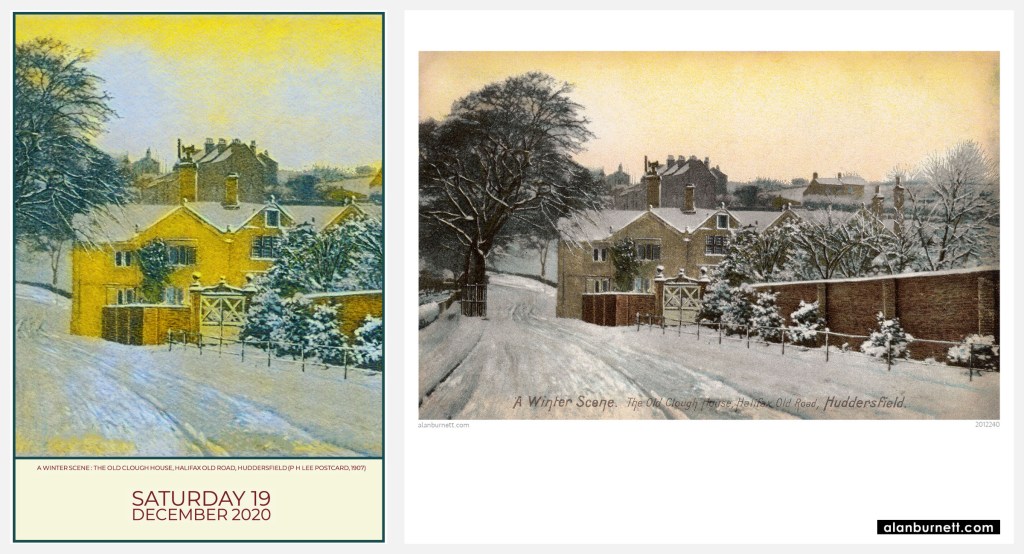 The 16th century Clough House stood on Halifax Old Road, just north of Huddersfield. Its grandness can be judged by the fact that under the 1664 Hearth Tax it was taxed on five hearths, which at the time was not just grand it was positively greedy. Sadly it was demolished in 1899 and now lives on only in an old postcard in my collection.