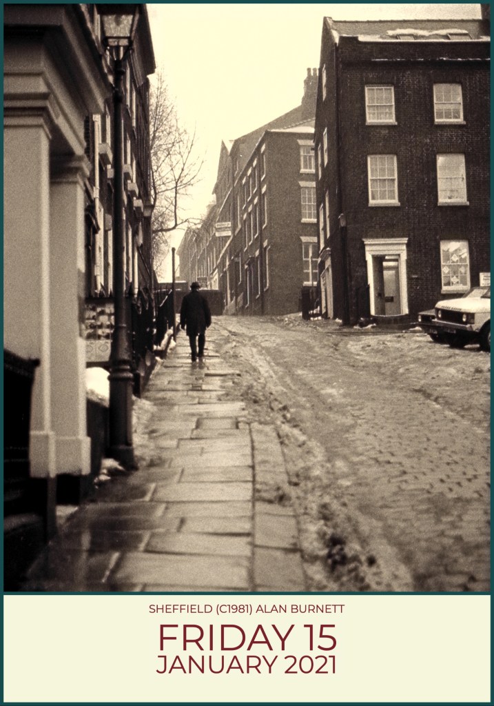 If you ask me where I come from, I will say Halifax: even though I was not born in the town. For the first five years of my life, I lived far away in Bradford, and we only moved across the border when I was five. Even though I wasn’t born in the town, and I have not lived there most of my adult life, Halifax is where I spent my formative years, and therefore my home. My son was born in Sheffield, and even though I managed to get him back to the Halifax area by the time he was five – and keep him here for those self-same formative years – by the age of eighteen he had gravitated back to the steel city. If I ask him where he comes from, he will probably wave his Wednesday scarf in the air and say Sheffield. I will often show him my old photographs and ask him to identify the location. If they are of Halifax, he will shrug his shoulders with the kind of indifference that only a non-native of the town can muster, and ask for pictures of that southern city he calls home. So, today’s calendar picture is for Alexander – where is this? It is somewhere in the city (or it was when I took it forty years ago), but where? I have removed the street signs so as not to give it away. (Note to Sheffield Council: when I say removed, I mean removed via Photoshop rather than a bolt-cutter and crow-bar).