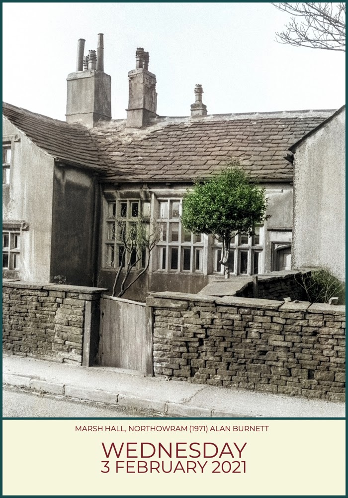 I was looking through my photographs the other day for one of the old Northowram Hospital, and I came across this photograph, which I took just a little further along Lands Head Lane showing Marsh Hall. When I took this photograph fifty years ago, the 16th/17th century Hall was showing its age; towards the end of last century, however, it was spruced up and renovated. I went to the Hall back in the 1950s when it was occupied by a farmer and milkman whose son was in the same class as me at Junior School. I remember being fascinated by those wonderful old windows which, when seen from the dark interior, seemed to let light flood into the room. If it was anywhere else other than West Yorkshire, the house would probably be famous with people travelling miles to see it. Here, it keeps itself and its history to itself, not wanting to make a fuss.