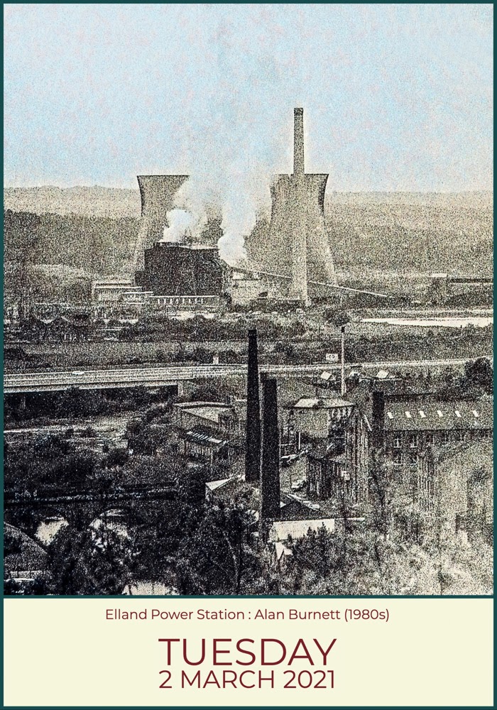 My calendar today features a photograph I took forty or so year ago of Elland Power Station. When I took the photograph, the power station was relatively new – the Official Opening took place seventy years ago this year – but it was already reaching the end of its life. Within ten years it had been decommissioned, within twenty it had been demolished. In checking the various facts about its life history, I came across the press report of the official opening ceremony, which was performed by a certain Mr A R Cooper (M.Eng, M.I.E.E., M.Inst.F), accompanied by the new station superintendent Mr W Poppleton (Assoc.I.E.E. A.M.Inst.F). How on earth they managed to fit all those letters within even the cavernous turbo house is a mystery, and it has to be said that the praise being heaped upon the new power station was less than fulsome. Mr Poppleton said “that the Elland station was not an unusual one, but reliable. It was built there not because the site was ideal, but because generation was needed in this part of Yorkshire”. When he went on to describe the generating power of the new station, however, his language became far more energised. The new station, he declared, would generate enough power of a town of 200,000 people or enough to power a fleet of half a dozen Queen Mary’s! The vision of half a dozen Queen Mary’s sailing in formation along the River Calder is an analogy that would put even Prof Jonathan Van-Tam to shame.