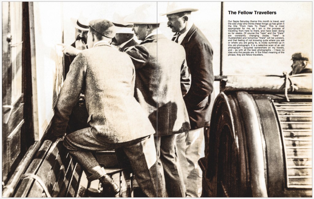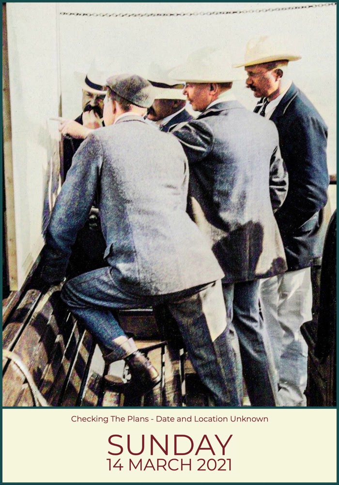 This is a photograph of unknown origin, the type of thing some people call an orphan image, which I must have acquired at some point as part of a job lot of old photographs nobody wanted any more. There is, however, an almost painterly quality about it: someone has taken the time to pose the group and the composition is outstanding. Equally, it has the ability to suggest both famous people and occasions: blink and I see President Roosevelt inspecting plans for the Panama Canal, blink again and it is Eiffel planning his tower. I’ve coloured it a bit and cropped it a bit, just to prove that you can’t spoil a good photo by messing with it. I even did a Google Image search to see if it was a copy of a more famous photo, and surprise, surprise, I found an exact match! It appeared in a blogpost five years ago by someone who said: “I have found this old photo and I don’t know where it came from!”. The post was from me – which just goes to prove two things: that life is a constant process of rediscovery ….. and my mind is beginning to go!