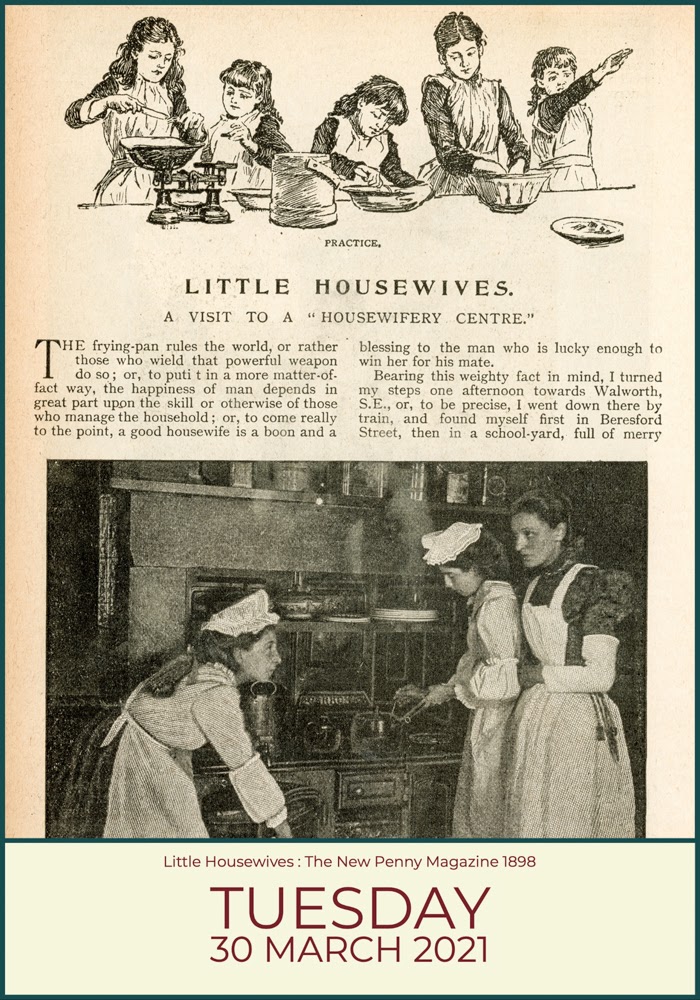 My room is packed from floor to ceiling with boxes full of old photos, old newspapers, old writings and old memories. Occasionally I randomly dip into a box and scan what emerges. Today it is a copy of the New Penny Magazine from – as far as I can make out – about 1898. It contains an article entitled “Little Housewives” which could form the basis of a PhD thesis on gender stereotyping at the turn of the twentieth century. Here is but a short extract:-