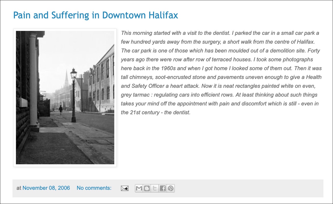 This was one of the first posts I ever put up on my blog, I posted it fifteen years ago in 2006. It came to mind because …. this morning started with a visit to the dentist! Actually, in the intervening fifteen years the dentist has moved, even closer to the town centre. Whist waiting for pain and suffering in downtown Halifax Part II to commence, I took a walk, and, of course, took some photographs.
