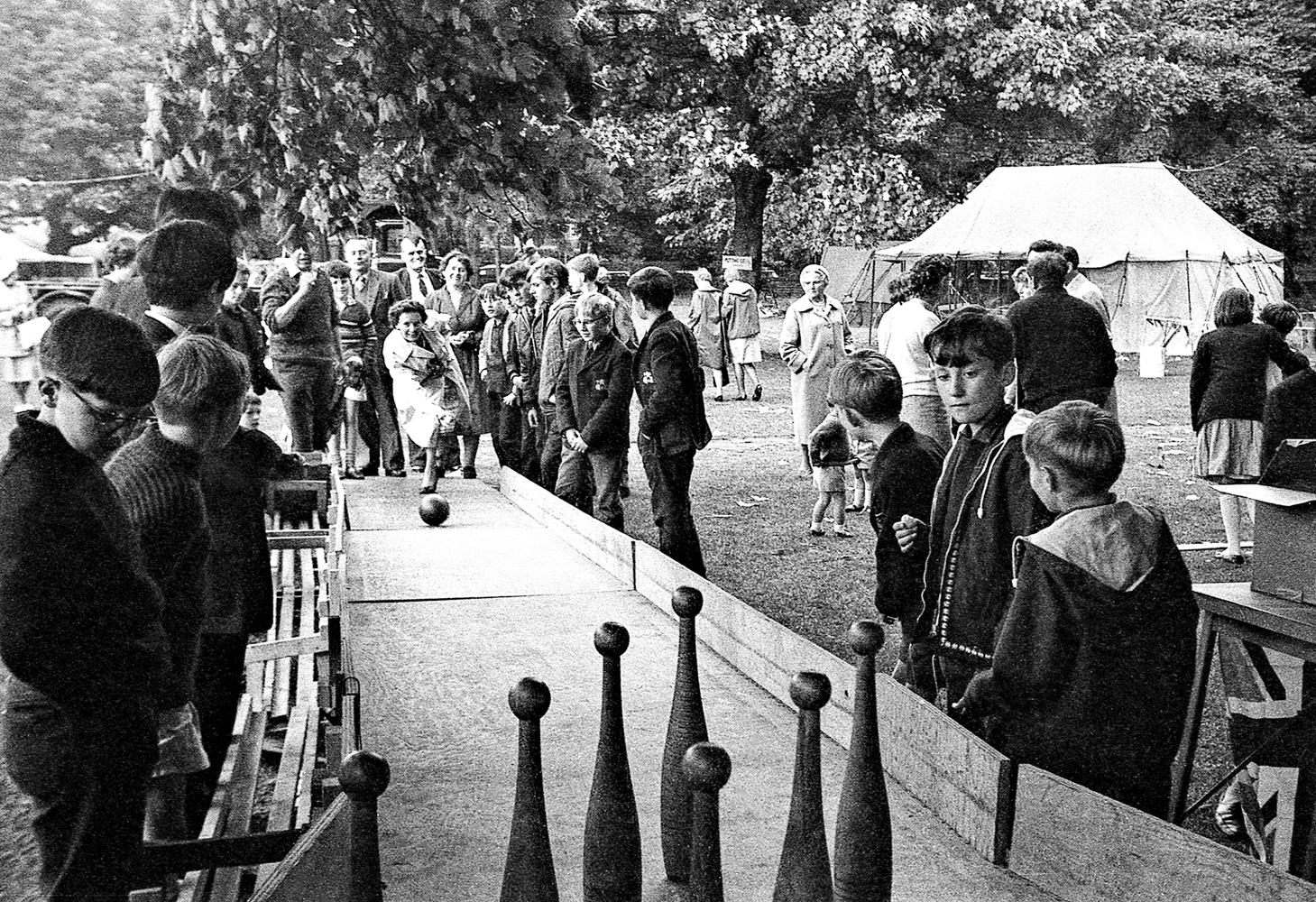 This is from a strip of six negatives from the mid 1960s. The photographs were taken, as far as I can remember, at the Halifax Gala in Manor Heath. I may have featured some of these photographs before, I can’t remember, but they are probably worth a second outing. The first of the six photographs features a wonderfully home made skittles alley and a rather professional looking bowler, out to win a prize.