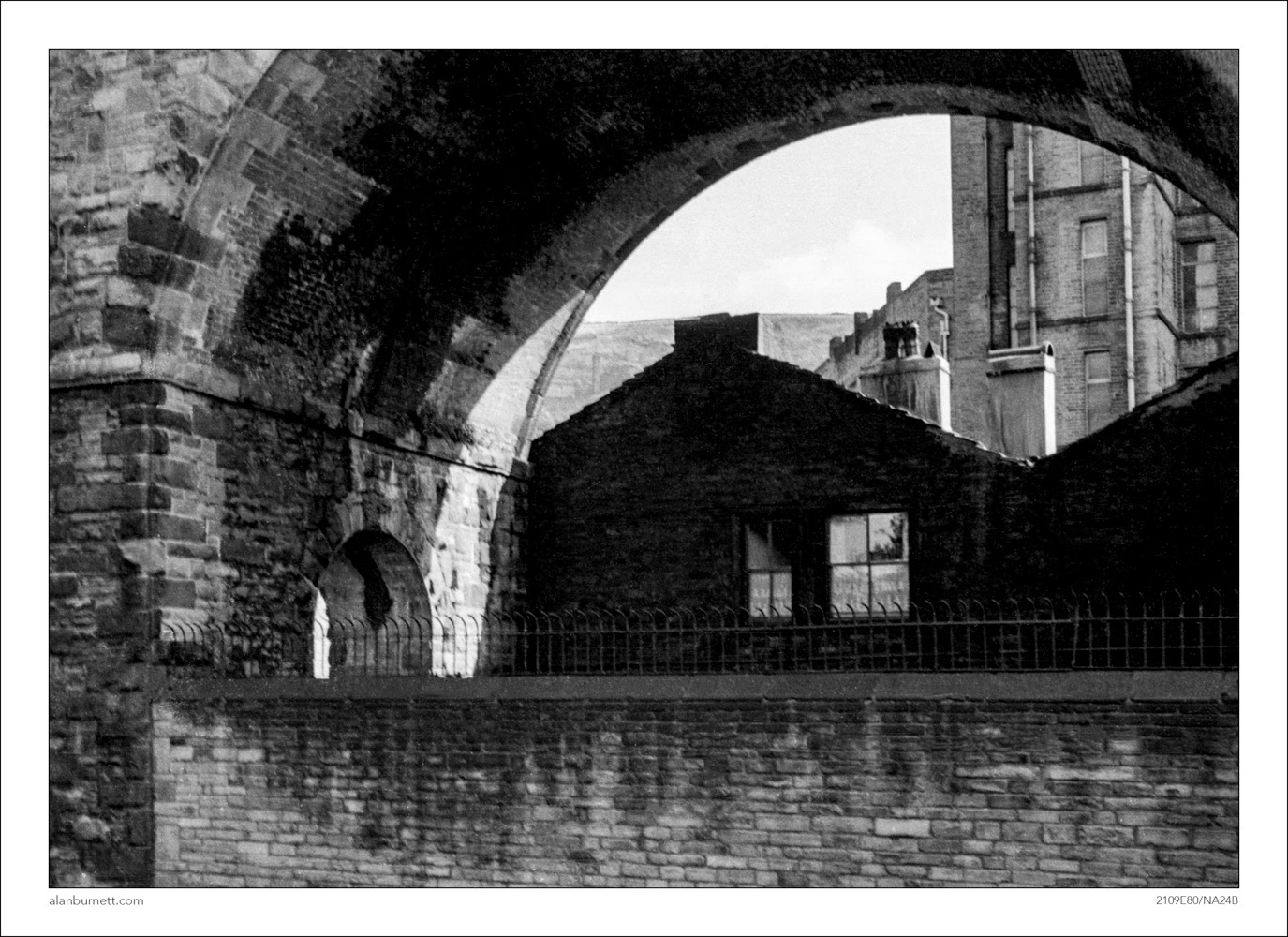 This is one of my photographs from the late 1960s which I took from Lower Kirkgate in Halifax, just below the then Parish Church (now, Halifax Minster). Fifty plus years later, the railway viaduct has gone, and the same is true of the pub with the net curtains that used to nestle under the railway bridge for shelter. The carpet mill is now a Matalan car park and the scarred slopes of Beacon Hill are now covered with trees. The new Halifax is more colourful and diverse than the old Halifax, but it is this 1960s grey version that pervades most of my memories.