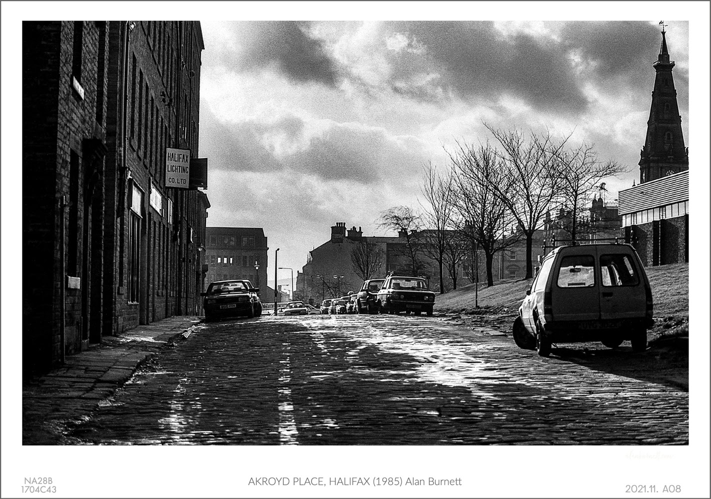 I took this photograph 35 or more years ago. At the time, Akroyd Place ended in the car park that was such a central feature of the Halifax of my youth. Next to it was the building that had been the Halifax Bowl, but by the time I took this photo it had been converted into a supermarket. The Town Hall imposed its presence on this part of the town and the sun still reflected off the stone sets. The stone sets of Akroyd Place are still there, but the road now provides little more than a view of the back wall of Broad Street Plaza.
