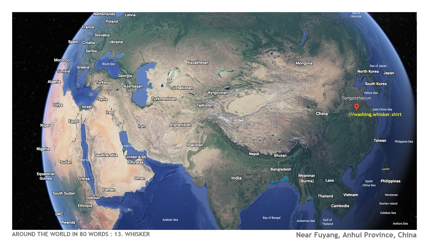 We had arrived in the Anhui Province of China from our previous location in the Champagne Region of France. For most people (and dogs) that would require long distance international air travel, trains, buses, taxis, passports, visas, injections, health certificates, foreign currency, and a fortunes’-worth of travel and pet insurance. For us it had required nothing other than to change ///washing.basket.shirt into ///washing.whisker.shirt and we were gently transported into the middle of a field of rice thirty miles south east of the city of Fuyang.