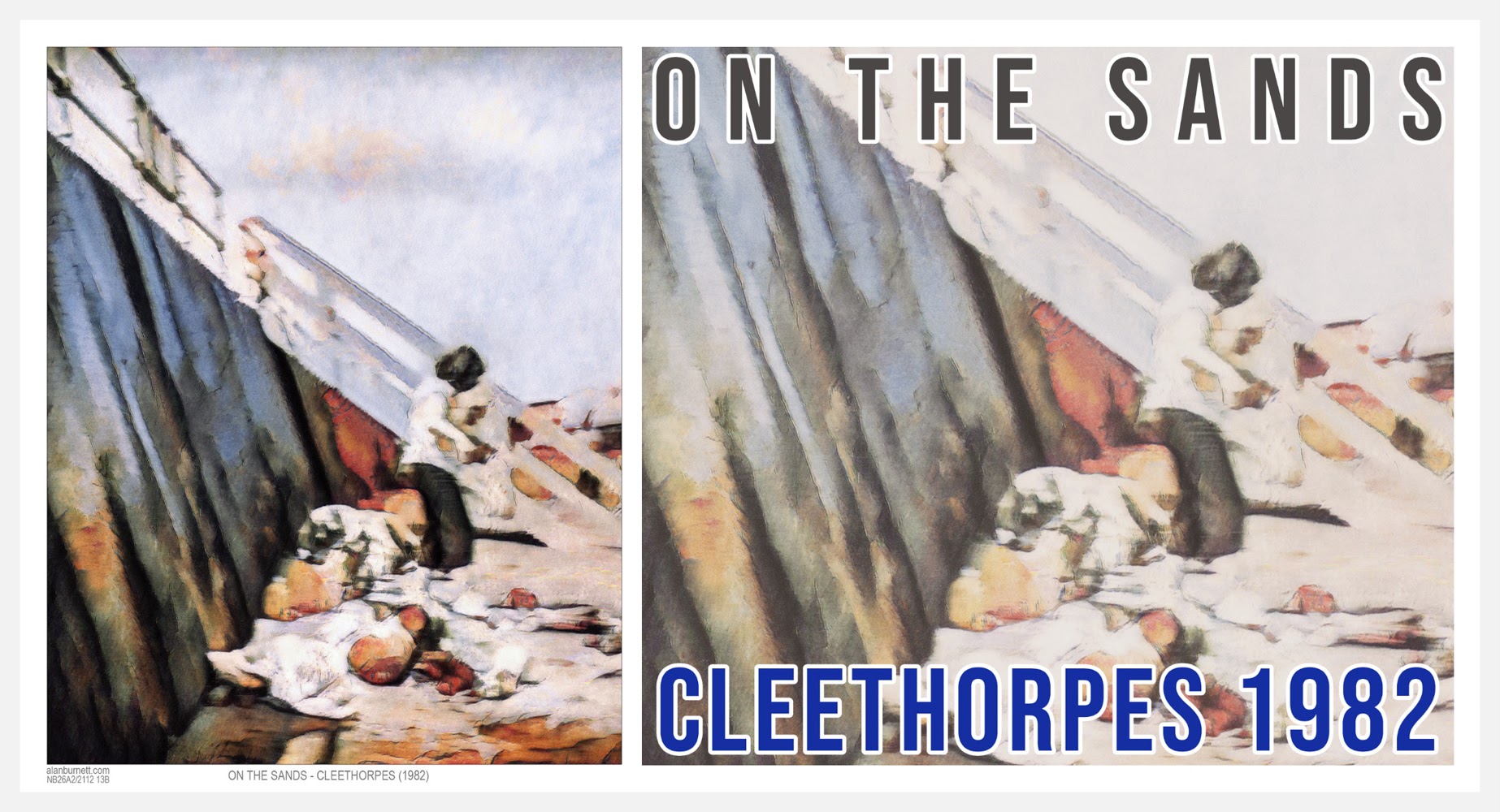Messing about on the sands in Cleethorpes forty years ago. Messing about with a photograph of messing about on the sands in Cleethorpes, late last night. Whisky glass in hand, Photoshop filters all lined up. Photographs become reduced to shapes, colours reduced to shades. On the sands.