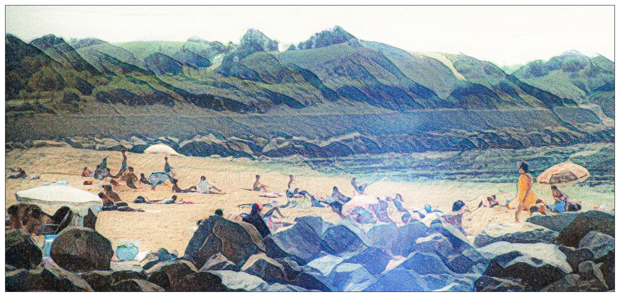This is based on a photograph I must have taken back in the 1980s. It wasn’t a particularly good photograph in the first place, but experience suggests that poor photographs are good raw material for “filtering” (Filtering = the process of applying Photoshop filters in order to make pleasing images). At a guess, it was taken somewhere on the South coast, but I have no memory of where. Wherever it is, I think it is a fairly pleasing image, and therefore worth preserving.