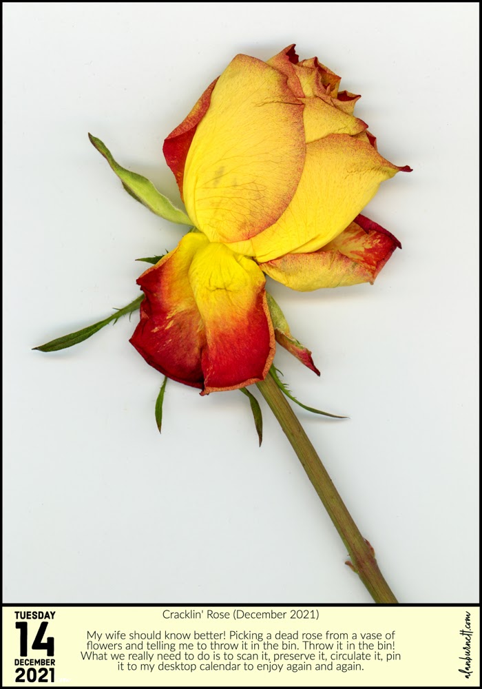 More December calendar days which transport us from a group of statues gossiping in the sun, to a World War 1 leader captured forever on a vintage postcard, and finally a dead rose on its way to the dustbin.