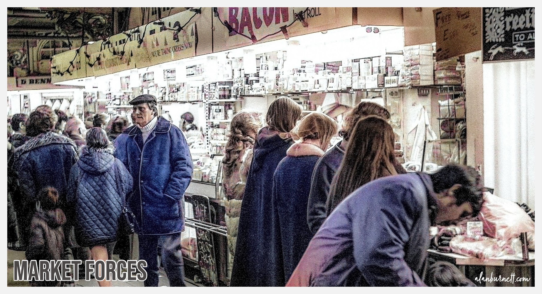 MARKET FORCES : The hidden hand of competition that brings together buyers and sellers of bacon, beef and free range eggs under the cast-iron canopy of Victorian elegance. That was Halifax Borough Market fifty years ago.