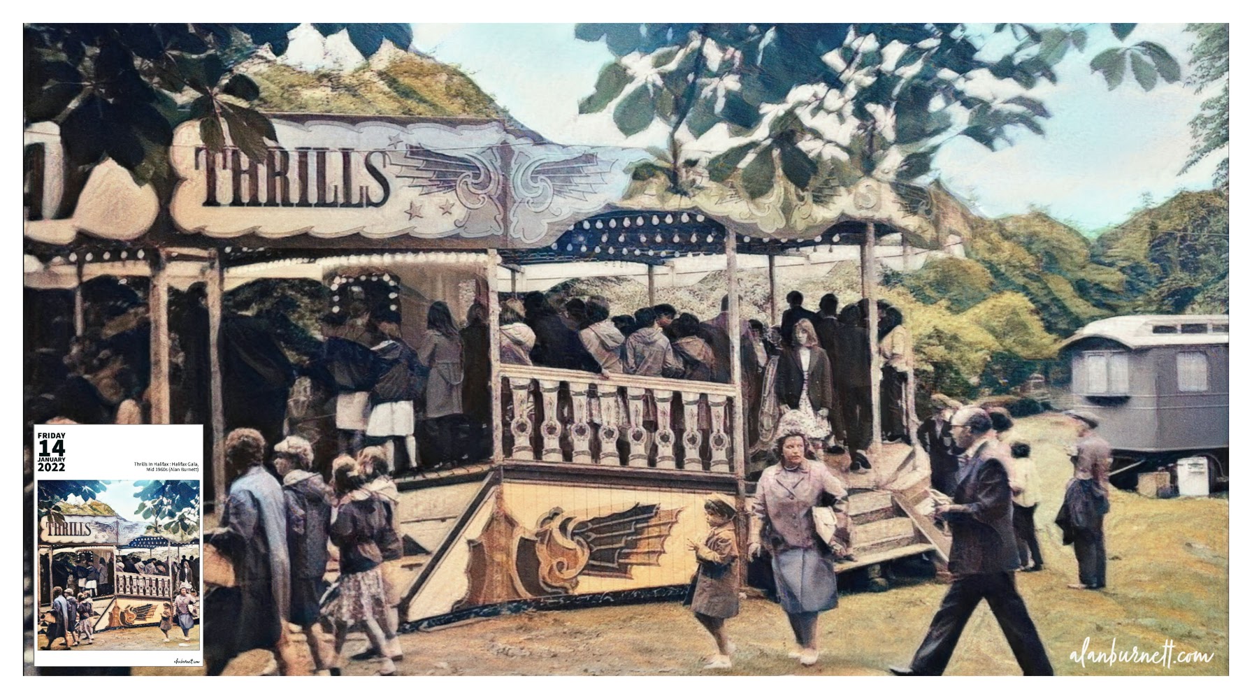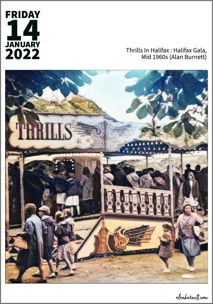 The basis of today’s image is a photograph I took in the mid 1960s at Halifax Charity Gala in Manor Heath Park. The thrills were provided by the noise, the crowds, the smell of candy floss and deep fried chats …. and a waltzer.