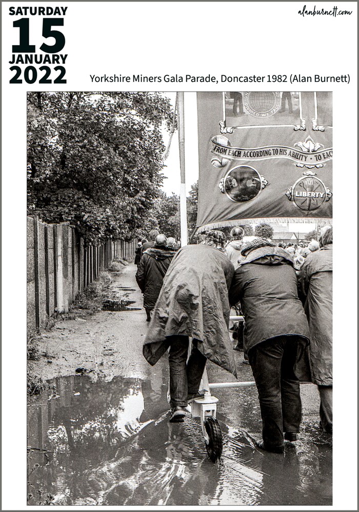 Forcing forward in the spirit of liberty or getting bogged down in the mud of history: today’s calendar image dates back to 1982 and the Yorkshire Miners’ Gala Parade in Doncaster. Around the corner was the miners’ strike and changes beyond the imagination of those valiant banner-pushers.