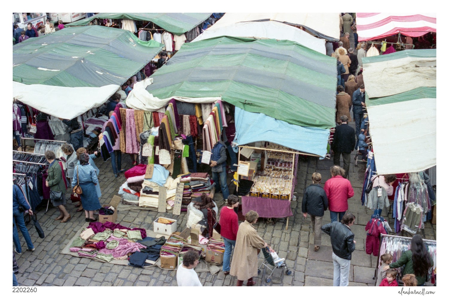 This new image is based on a photograph I took forty years ago in Halifax. It was taken in the Piece Hall when that fine building was going through one of its early transitions from redundant wholesale marketplace to open-air retail market. It was busy and purposeful, but the location was of secondary importance: the open space was merely a suitable location for a few market stalls. Forty years on, and it is the location that takes pride of place, the building that is the star of the show.