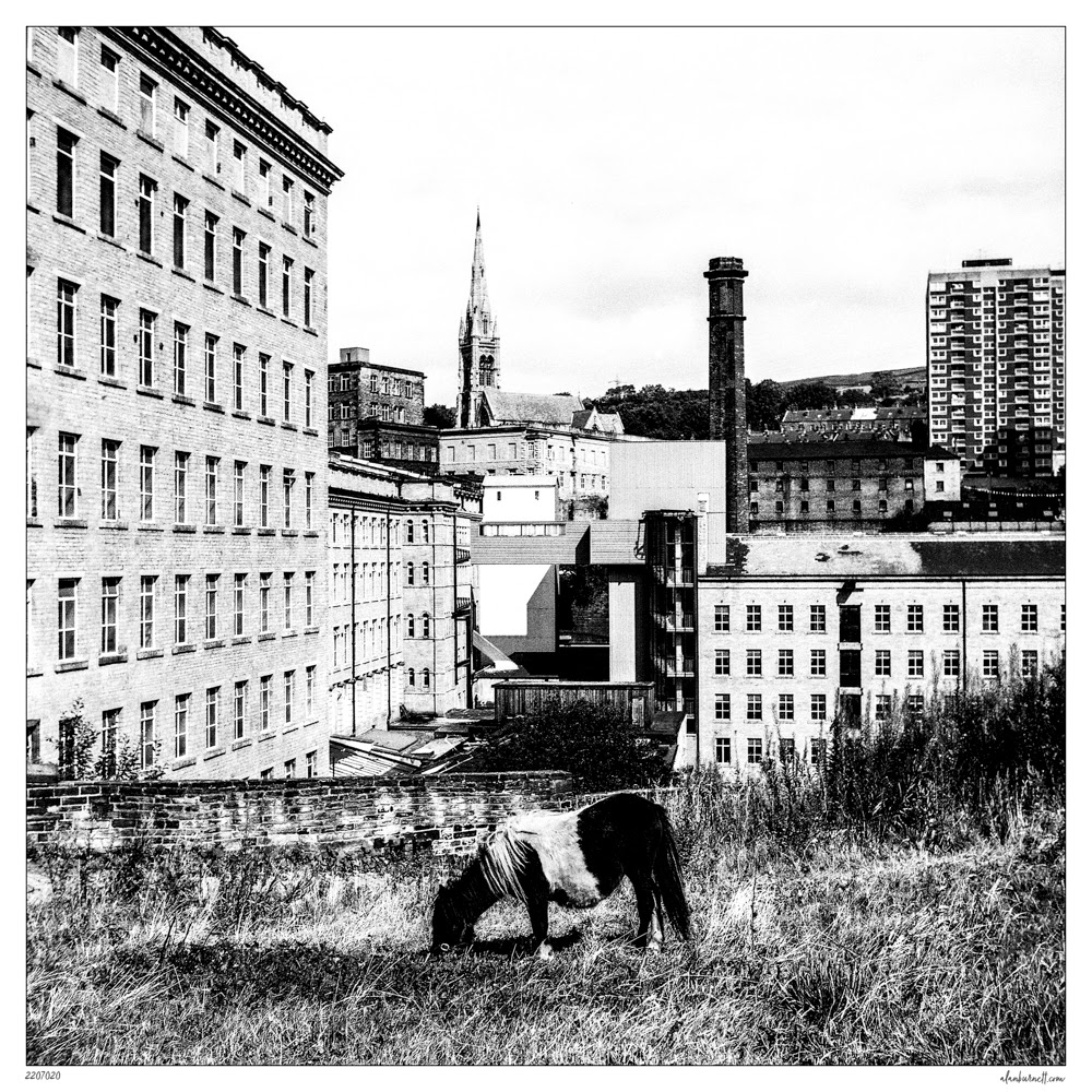 I probably took this in the early 1980s at a time when the Dean Clough was about to start a journey of transition from a redundant carpet mill to the busy complex of offices, galleries, restaurants and bars we know today. I wonder what the horse would have made of it all?