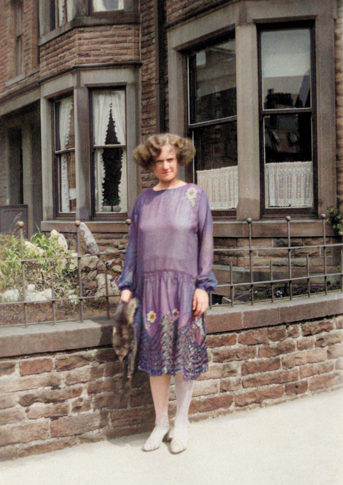 This is a photograph of my Auntie Annie – Annie Elizabeth Burnett who, in October 1933, became Annie Moore. My guess is that this particular photograph was taken before she married and could potentially date from somewhere in the late 1920s. She was born in 1903, and therefore she would have been 25 years old in 1928, perhaps about the time the photograph was taken. To try and pin down the date more accurately, we need to turn to those old standbys of photographic dating – cars, clothes, aerials and dustbins. We can quickly get rid of two of these markers – there are no cars in the photograph and no rooftops to check for TV aerials or satellite dishes (although the photograph is clearly too early for either). Dustbins are also a more recent marker – try taking a similar photograph in Britain today without an enormous wheelie-bin cluttering up the composition – so that can be dismissed as well. And that leaves clothes.