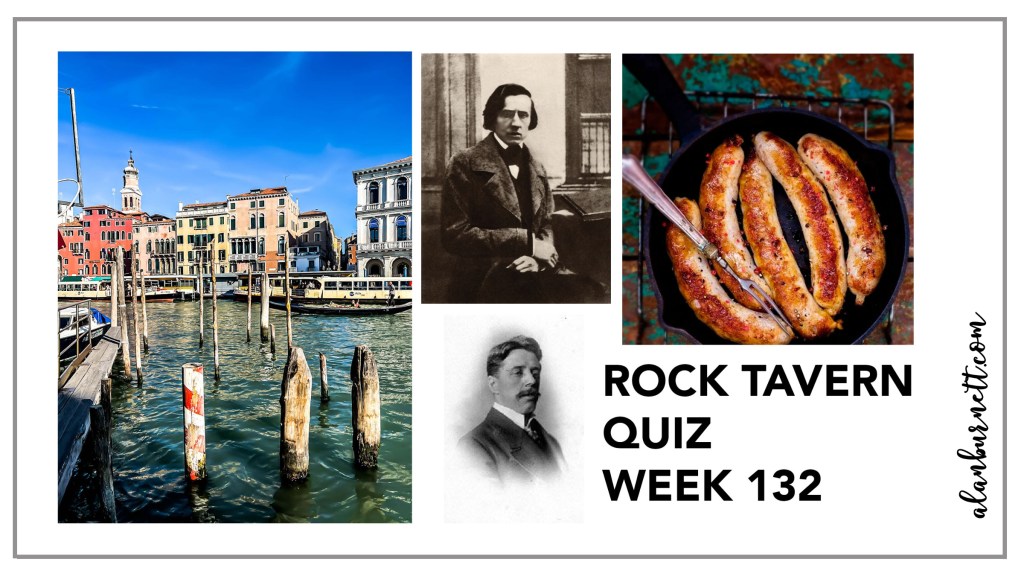 The last of the Friday night Rock Tavern Quizzes was held on the week before lockdown commenced, back in 2020. Once lockdown was in place, we decided to carry on with the quiz as a virtual event via email. It is 132 weeks since then, and it is still going in the same format. We have a rota of quiz setters, and this week it is my turn: so I have decided to share the questions with anyone who cares to play along. I’ll post the answers at the weekend. Good luck!