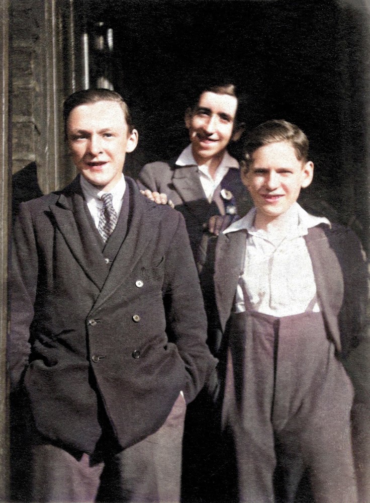 Three work mates pictured in Great Horton, Bradford sometime around 1930. The one on the right with the pair of most extraordinary trousers is my father, Albert Burnett. The one in the middle was a fellow workmate called, I think, Matthews. The one on the left appears to be a young David Cameron, but somehow I don’t think that’s likely.