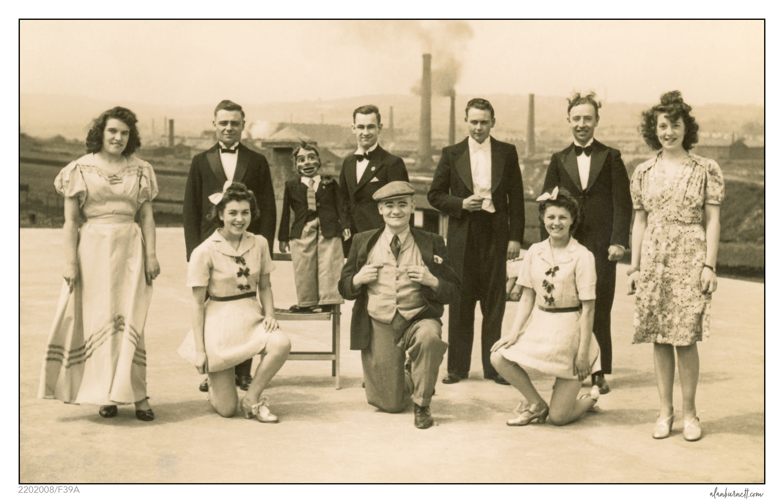 They might look like the cast of J B Priestley’s “Good Companions”, but this is the real thing. The photo is of the Silhouettes Concert Party, taken around 1932. And that’s my Uncle Harry (Harry Moore – Pianist and Tenor Vocalist) with the windswept hair, 2nd from the right.
